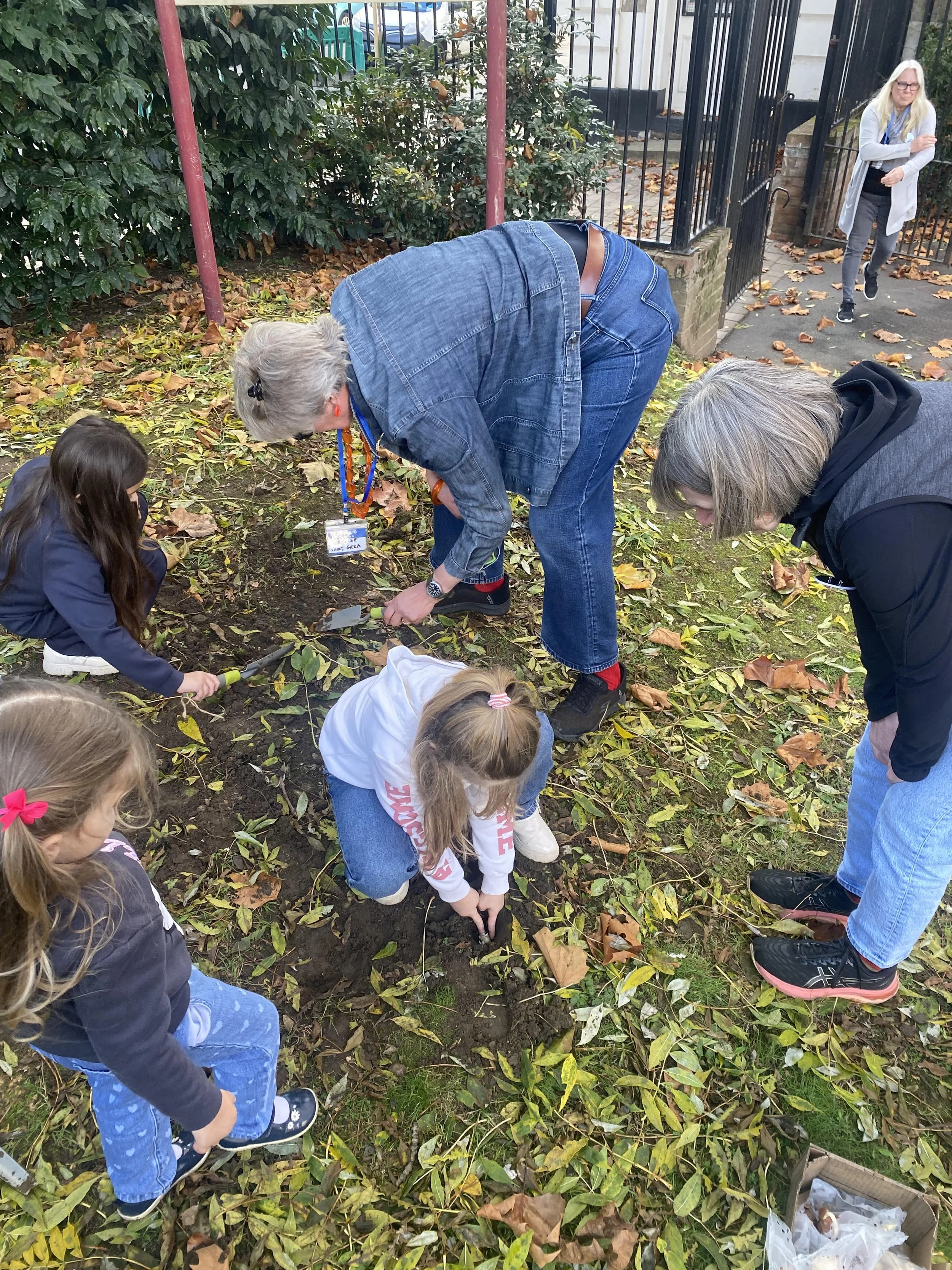 It was encouraging to see children engaging so well with nature. On the second day, 250 bulbs were planted by resident children, GRRA, and a local gardener on the grass slope outside Grosvenor Hall (with permission).